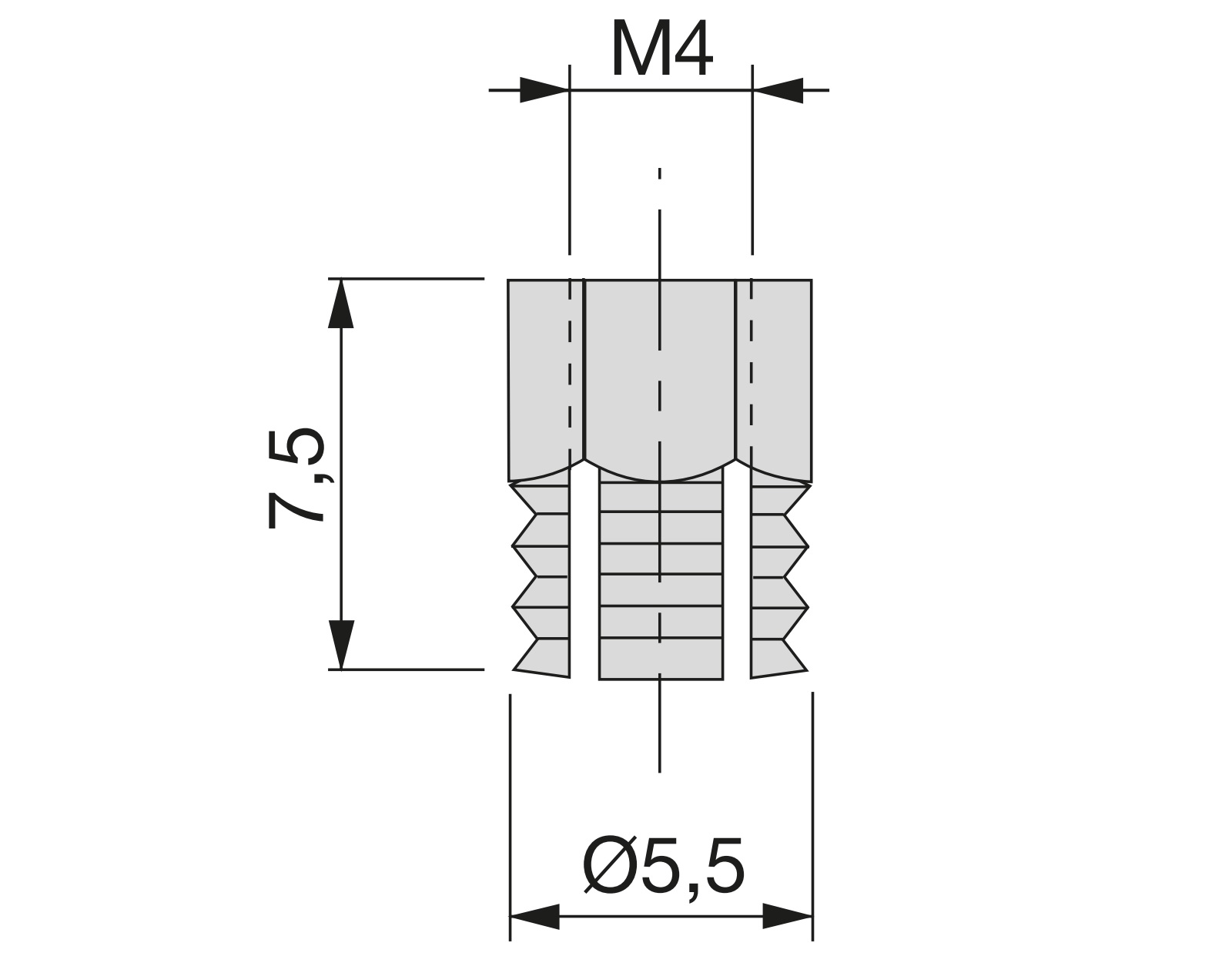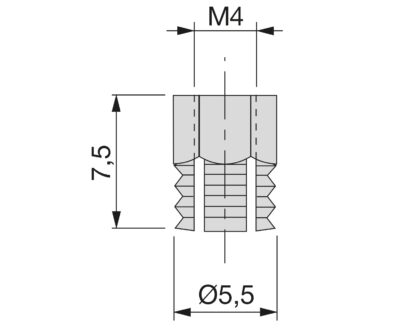 - The expansion socket with internal thread M4 is designed for pressing into a drill hole