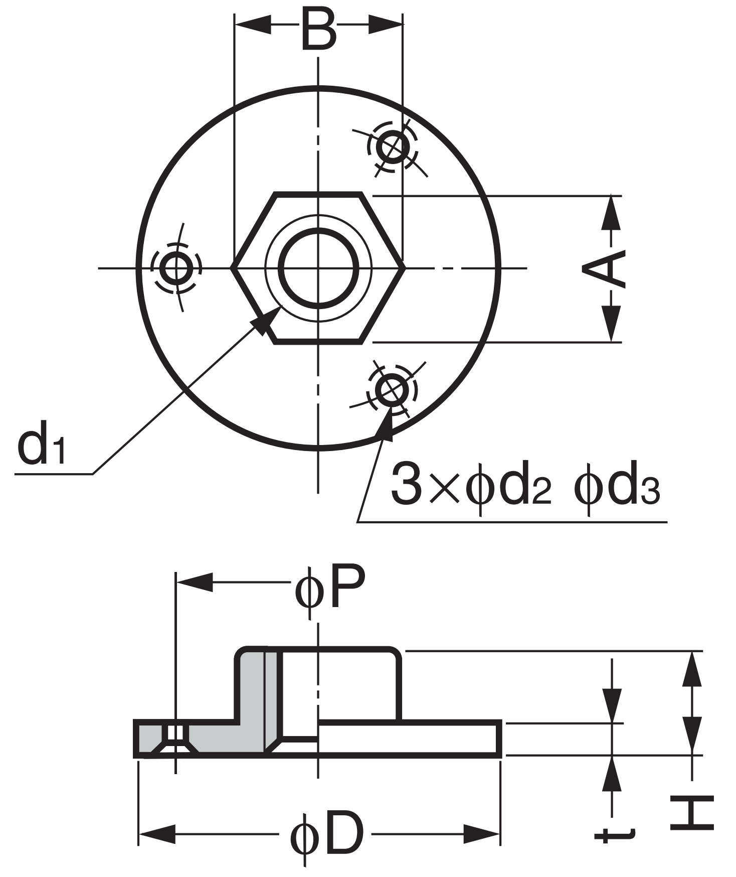 - Mounting hole diameter (⌀d2): ⌀3.2 mm (1/8″)