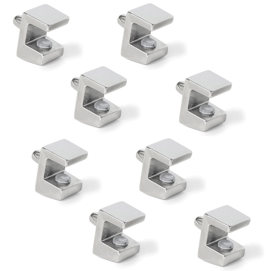 Eight pieces of high-quality glass shelf supports, made of solid die-cast zinc, surface: nickel-plated, 4007907, size: 5 mm (13/64″)