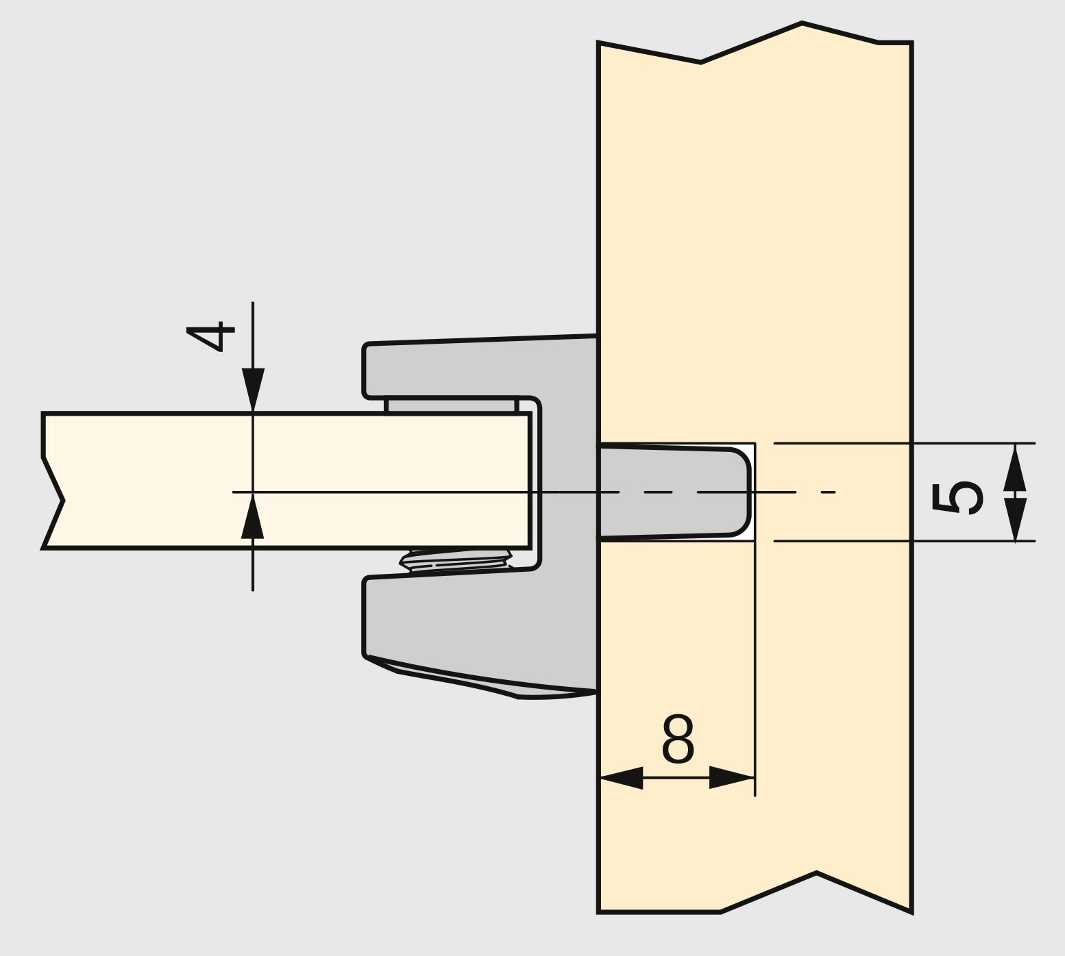 The 5 mm (13/64″) insertion bolt makes it compatible with standardised furniture holes.