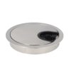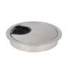 High-quality solid cable grommet made of zamak, ⌀80 mm for desk, with brush seal, surface: stainless steel look