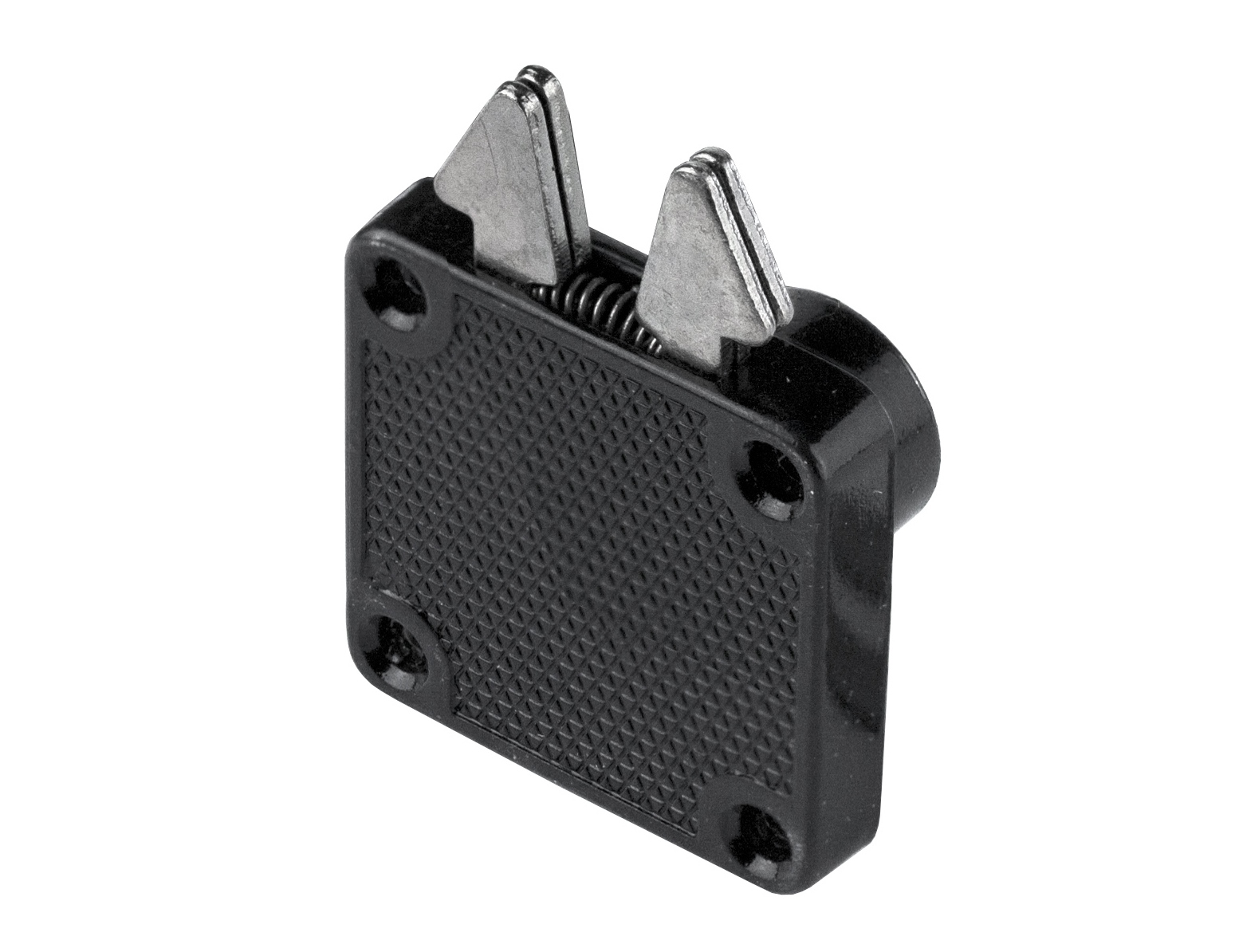 The two locking hooks spread automatically in the strike plate after closing and thus ensure stable locking of roller blinds or sliding doors.