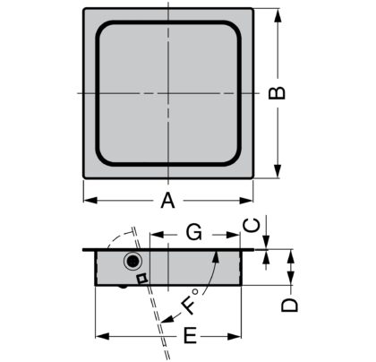 - Garbage flap dimensions (A x W): 170 x 170 mm (6-11/16″)