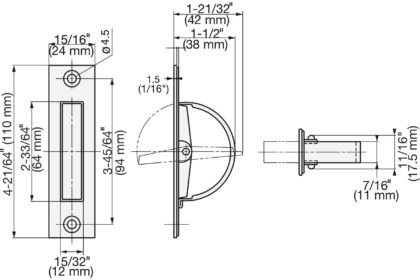 - Distance between mounting holes: 94 mm (3-11/16″)